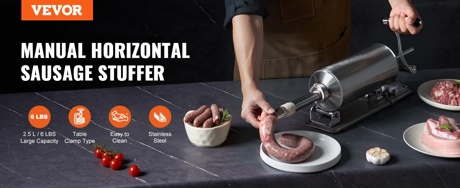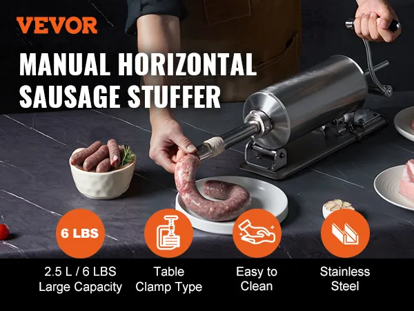 2.5 L / 6 lbs Large Capacity: With a 2.5 L / 6 lbs large capacity barrel, it efficiently produces sausages in large quantities, perfect for both home and commercial use, such as supermarkets, restaurants, and more.