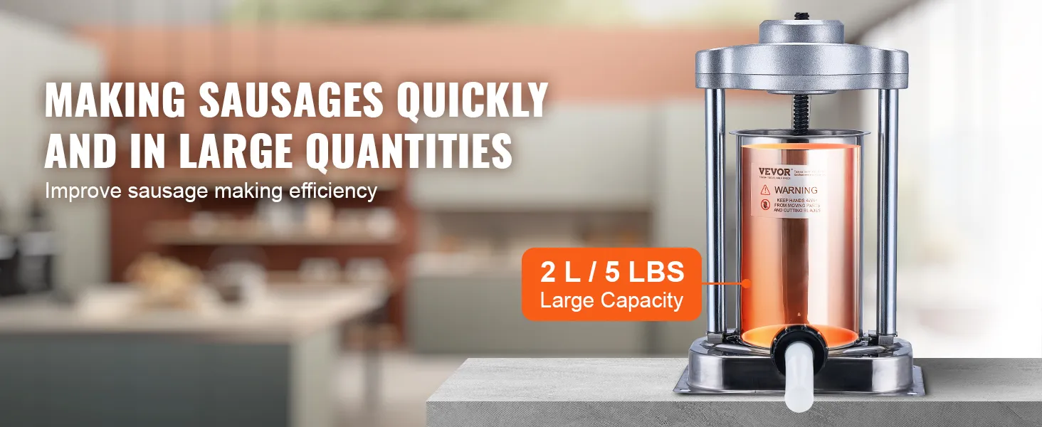 Large 2 L / 5lbs Capacity: With a 2 L / 5lbs large capacity barrel, it can efficiently produce sausages in large quantities, ideal for both home and commercial use, such as supermarkets and restaurants.