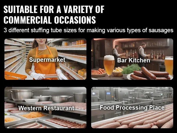 Includes 3 different diameter sausage tubes for making sausages of various sizes, suitable for use in kitchens, bars, and restaurants.