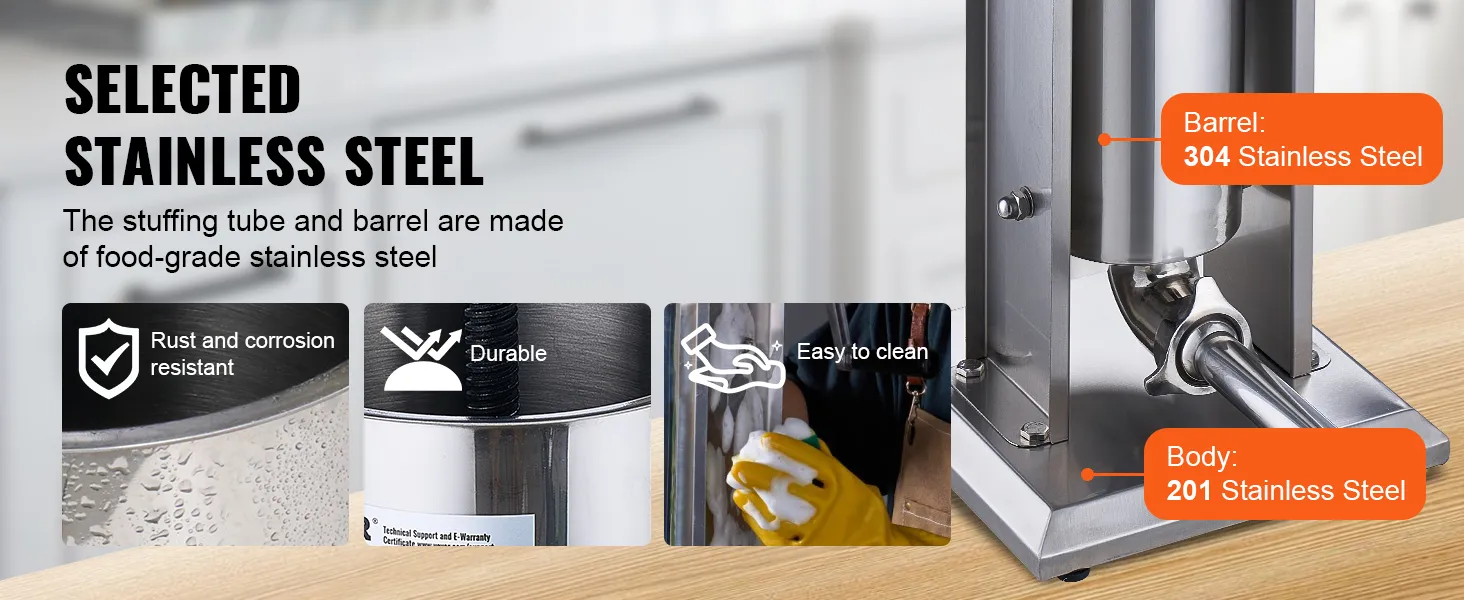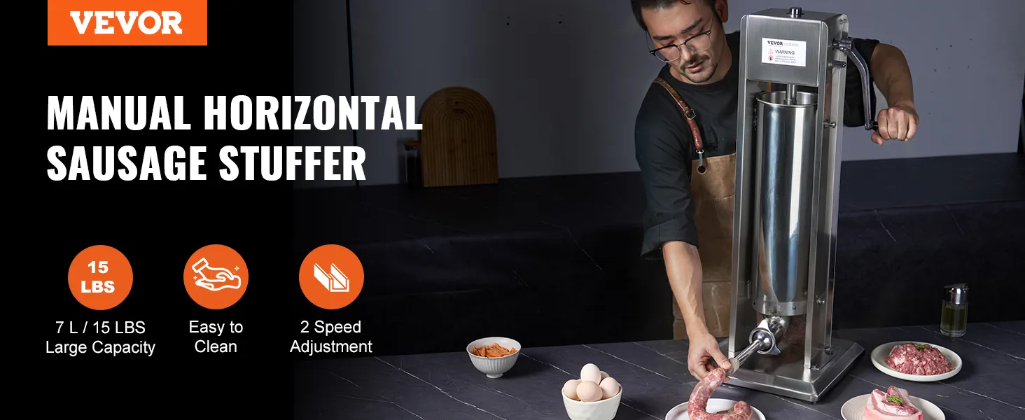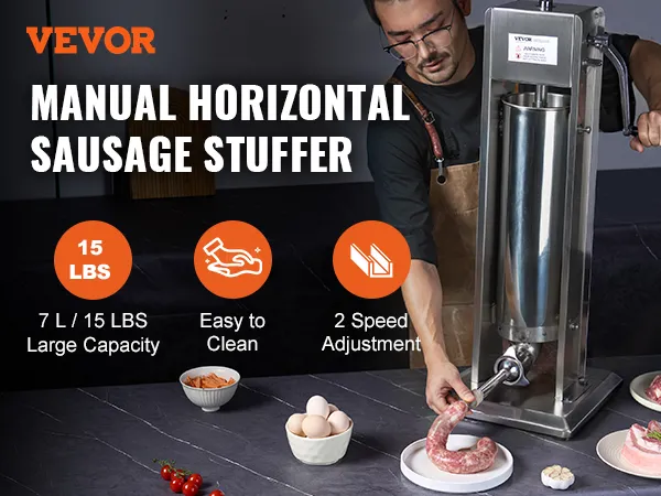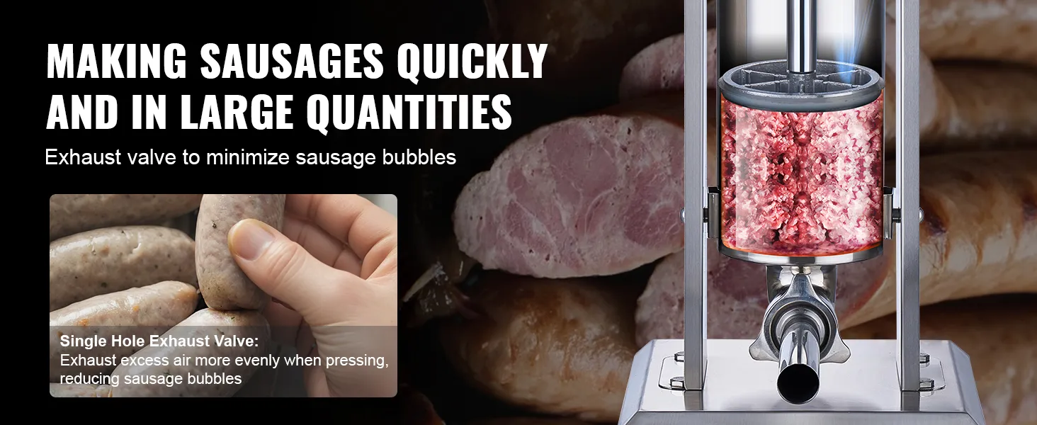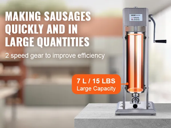 Large 7 L / 15 lbs Capacity: With a 7 L / 15 lbs large capacity barrel, it can handle large-scale sausage production, perfect for commercial applications such as supermarkets, restaurants, food processing factories, or home use.