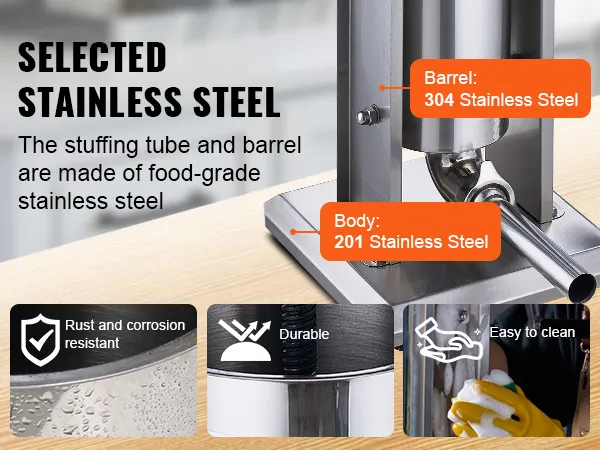 Food-Grade Material: Made primarily from sturdy stainless steel for the body, base, cylinder, and tubes. Components in direct contact with food are made of SUS304 material, meeting food hygiene standards to ensure every bite is safe. The detachable design facilitates easy cleaning.