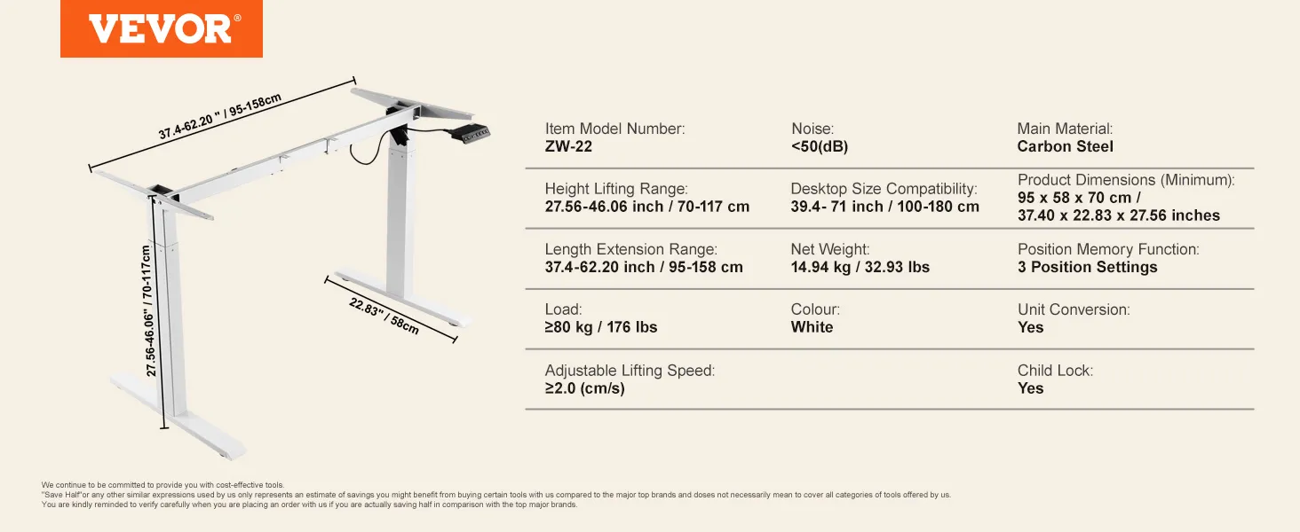 Sturdy and Stable: With a robust weight capacity of 80kg / 176 lbs, crafted from premium SPCC material, this desk stands strong, durable, and operates quietly. Its legs are reinforced by 20% for a comfortable and efficient workspace.