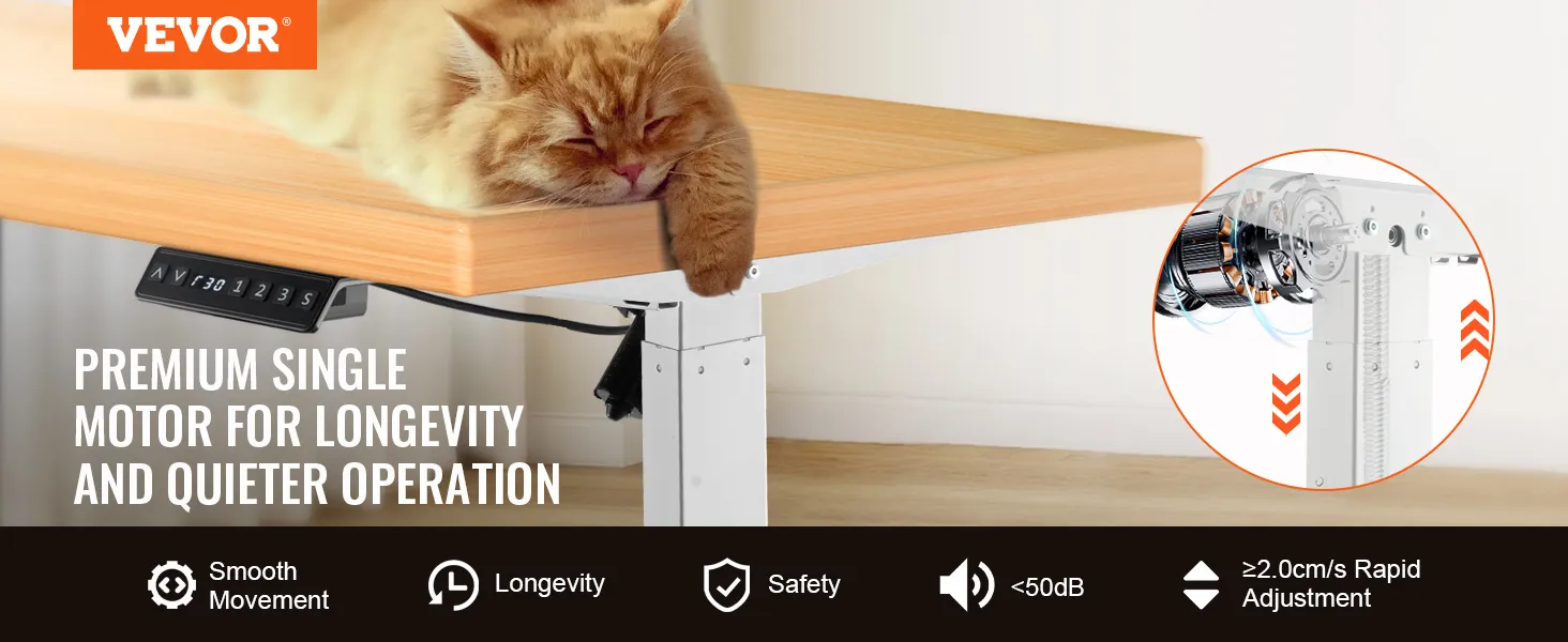 This standing desk is crafted with premium motor design, ensuring not only long lifespan but also whisper-quiet operation. Its smooth movement ensures safety and reliability, emitting noise levels for a tranquil and comfortable work condition.