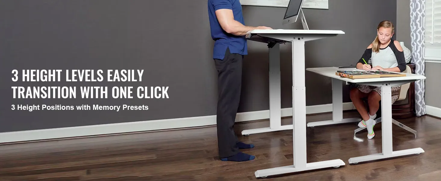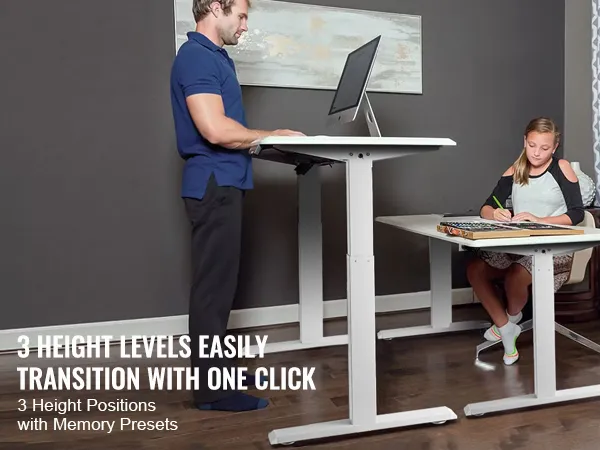 Equipped with a 3-position height adjustment feature, you can effortlessly switch between sitting and standing modes, boosting your productivity. Its spacious work area design allows ample space for your work essentials, ensuring a comfortable office experience.