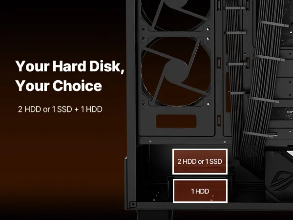Uitbreidbaar ontwerp: Deze pc-behuizing is compatibel met ATX/M-ATX/Mini-ITX-moederborden en ondersteunt GPU's tot 410 mm (16,14 inch) lang. De geïntegreerde schijfvakken bieden ruimte voor twee SSD's of één SSD + één HDD, waardoor snelle opstarttijden en flexibele uitbreiding van de opslag worden gegarandeerd.