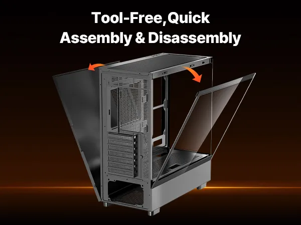 V: Kan ik de behuizing zonder gereedschap verwijderen? Is dit ook mogelijk voor technische beginners zoals ik? A: Geen gereedschap nodig! U kunt de voorruit en de linkerruit eenvoudig met de hand verwijderen. Stof verwijderen, hardware vervangen of waterkoeling installeren? Het is heel eenvoudig!