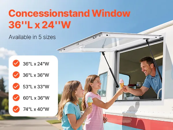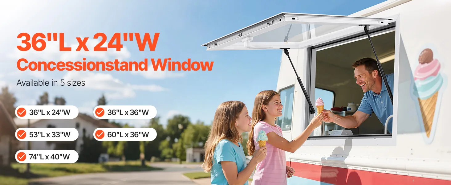 Precise Opening: With precise dimensions, the 36x24 inch (LxW) multifunctional concession window is easy to fabricate, install, or dismantle. Multiple sizes are available, suitable for ice cream shops, coffee shops, dessert shops, or food festivals