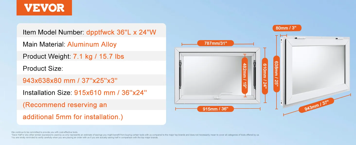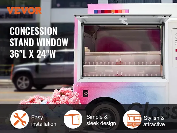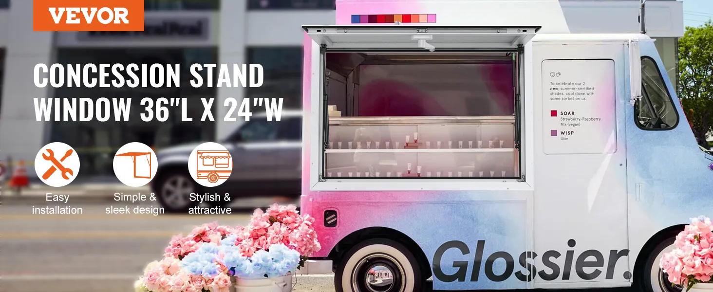 Nauwkeurige opening: het multifunctionele etalagevenster van 36 x 24 inch (915 x 610 mm) is zowel aantrekkelijk als praktisch, met nauwkeurige afmetingen voor eenvoudige verwerking, installatie of demontage. Het wordt veel gebruikt in foodtrucks, kraampjes, foodtrucks, barbecuetrailers, mobiele eetunits, etc. en is perfect voor het bijwonen van foodfestivals.