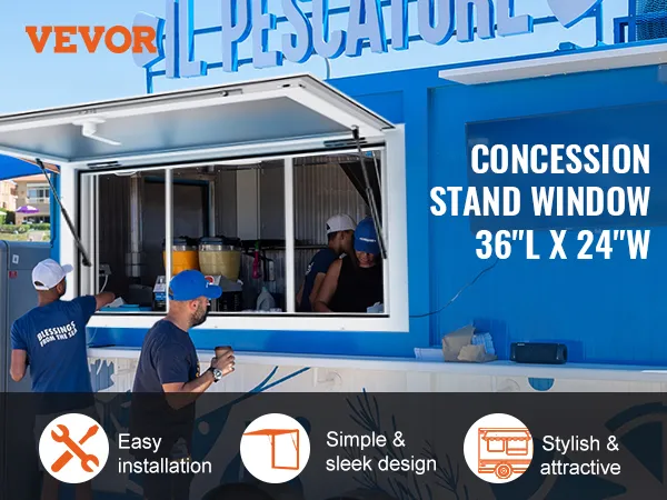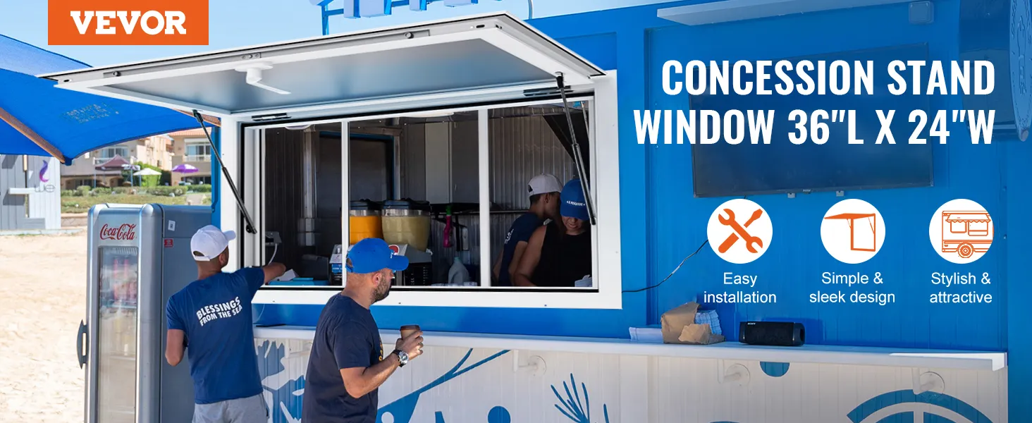 Nauwkeurige opening: het multifunctionele etalagevenster van 915 x 610 mm (L x B) is zowel aantrekkelijk als praktisch, met nauwkeurige afmetingen voor eenvoudige bediening, montage en demontage. Hij is breed inzetbaar in foodtrucks, kraampjes, foodtrucks, barbecuetrailers, mobiele cateringunits etc. en is ideaal voor deelname aan foodfestivals.