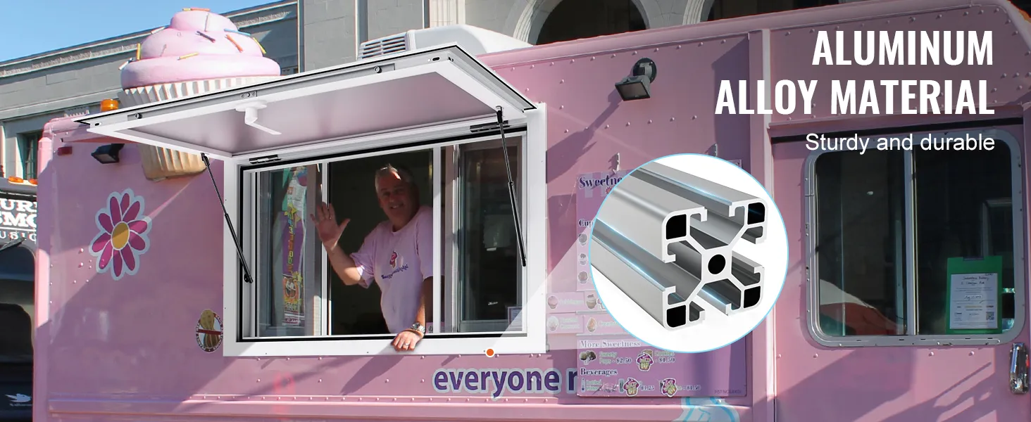 Hoogwaardige materialen: ons foodtruckraam is gemaakt van een frame van 0,05 inch (1,2 mm) dik aluminiumlegering en een roestvrijstalen gaasraam om duurzaamheid, stevigheid en een langere levensduur te garanderen. Poedercoating geeft de foodtruckramen een elegante en stijlvolle uitstraling.