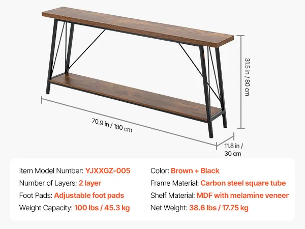 Sturdy and Durable Design: Our narrow console sofa table is crafted from thick MDF wood and a sturdy metal frame, supporting up to 100 lbs (45.3 kg). It includes 4 adjustable feet to ensure stability on uneven floors and helps avoid damage to your flooring. The anti-tip device ensures additional stability and security.