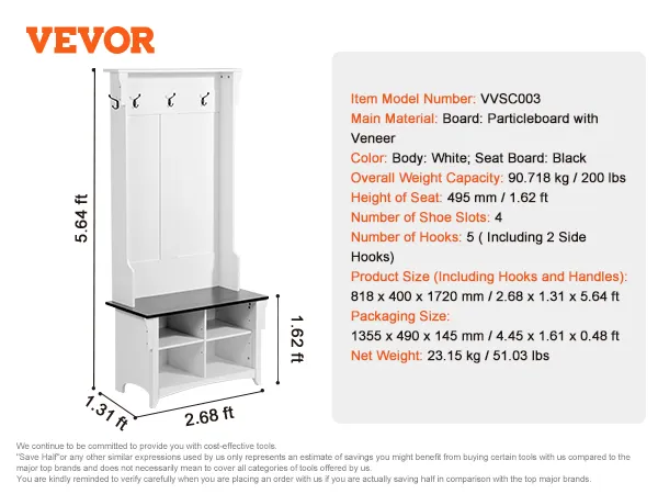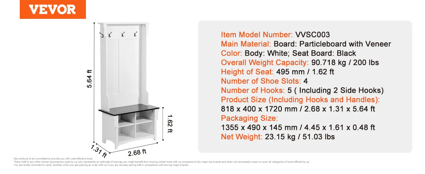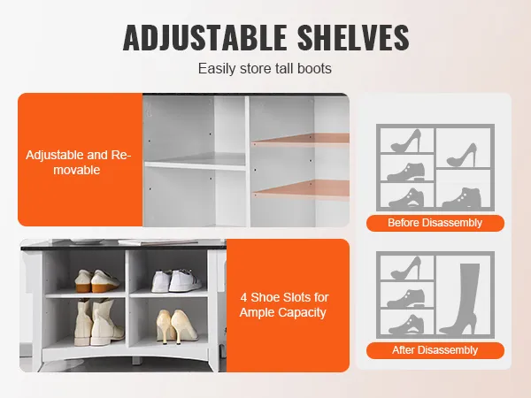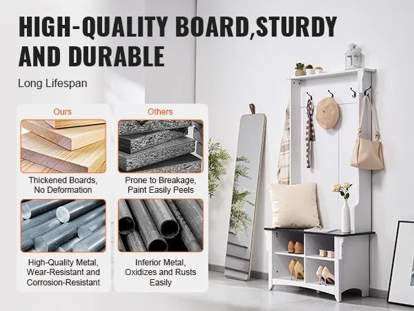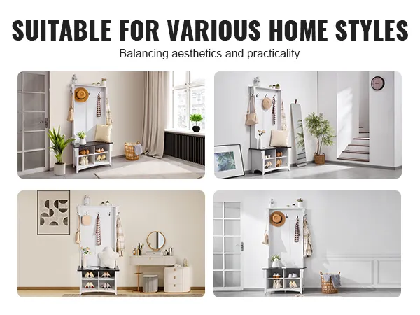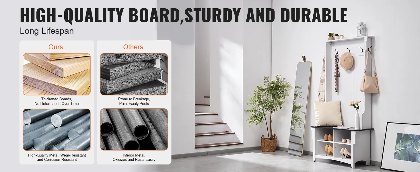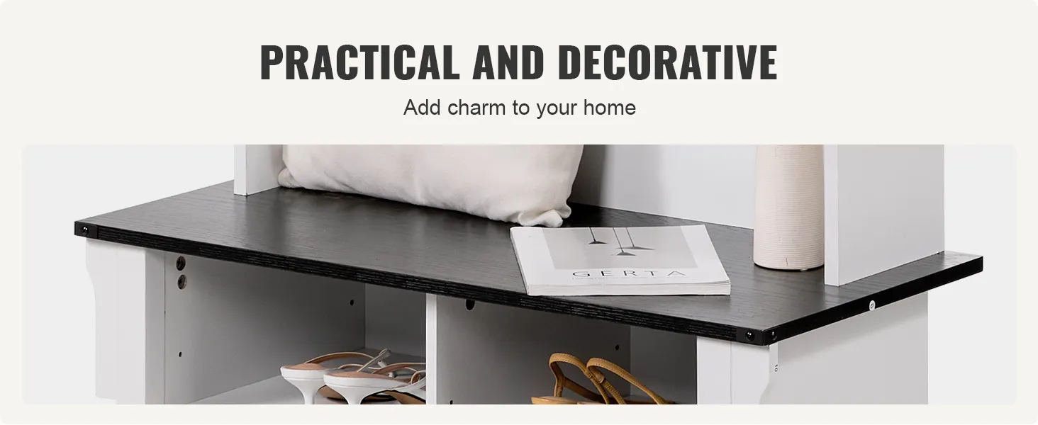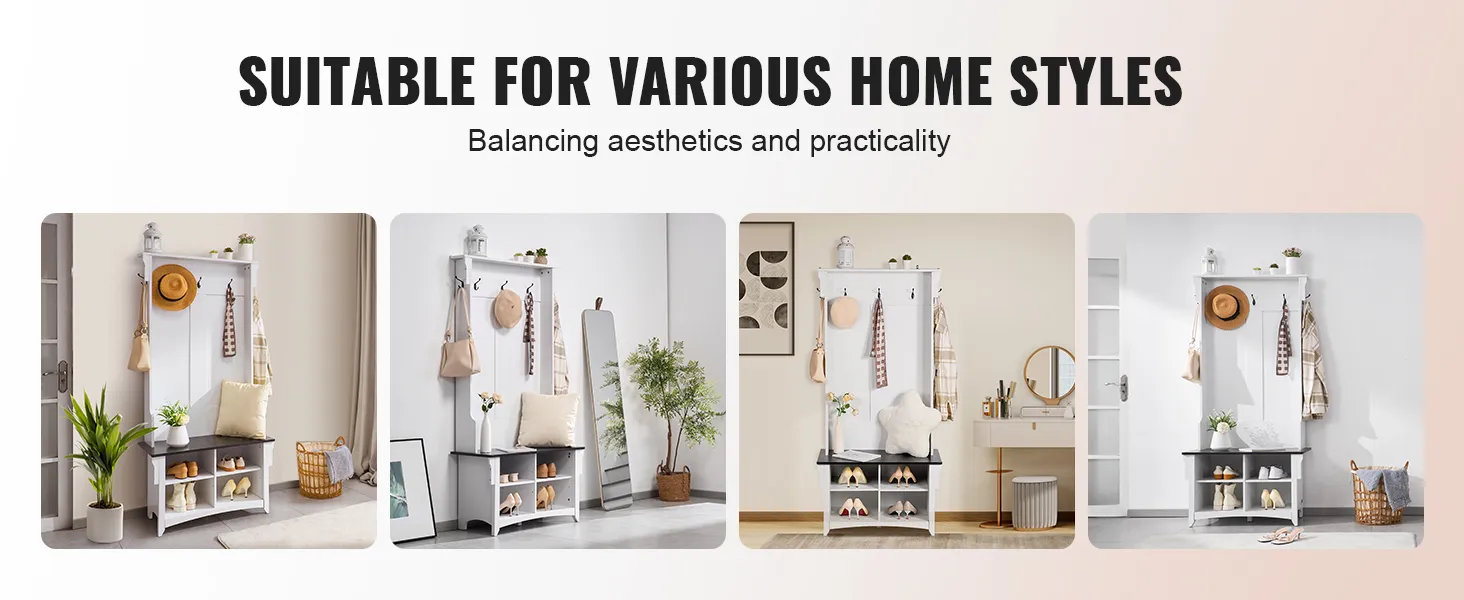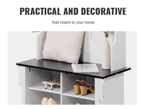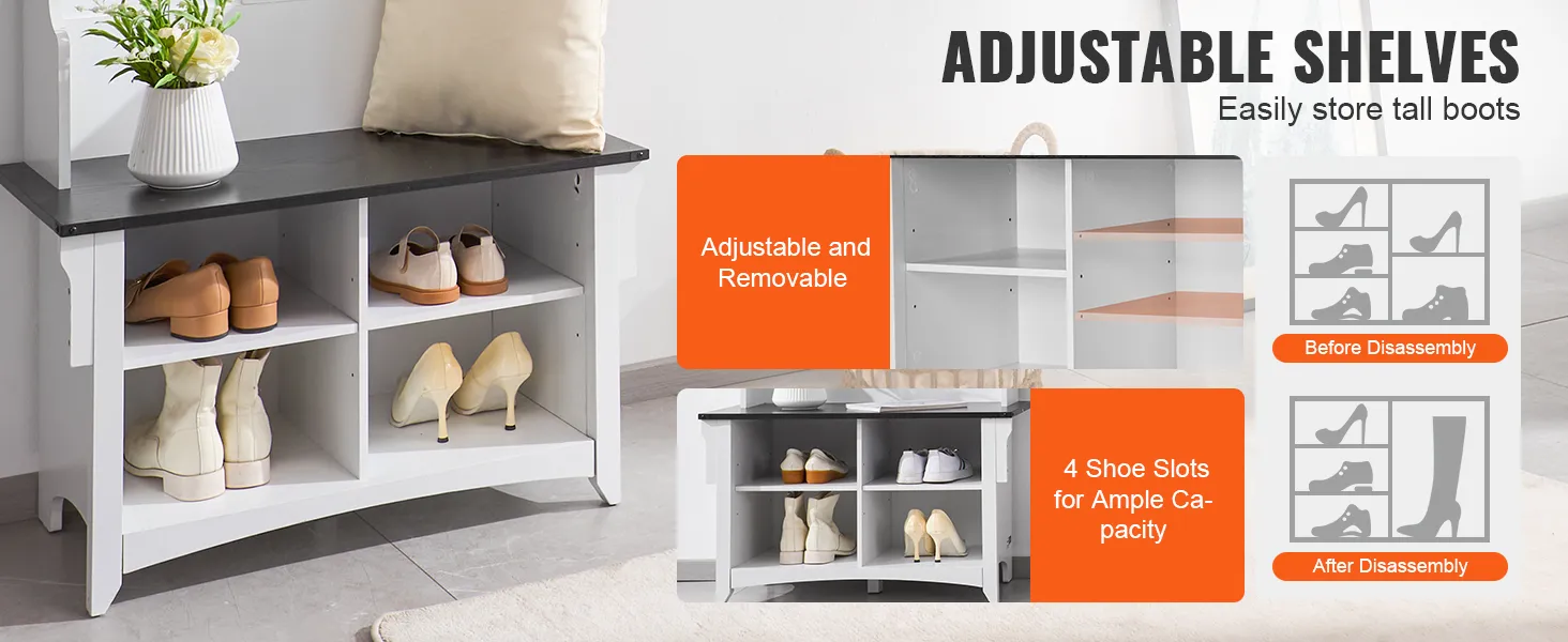 Smart Storage: VEVOR hall tree helps you organize effortlessly with its all-in-one design, which saves space. The shoe bench's adjustable and removable sides make it easy to store tall boots without hassle.