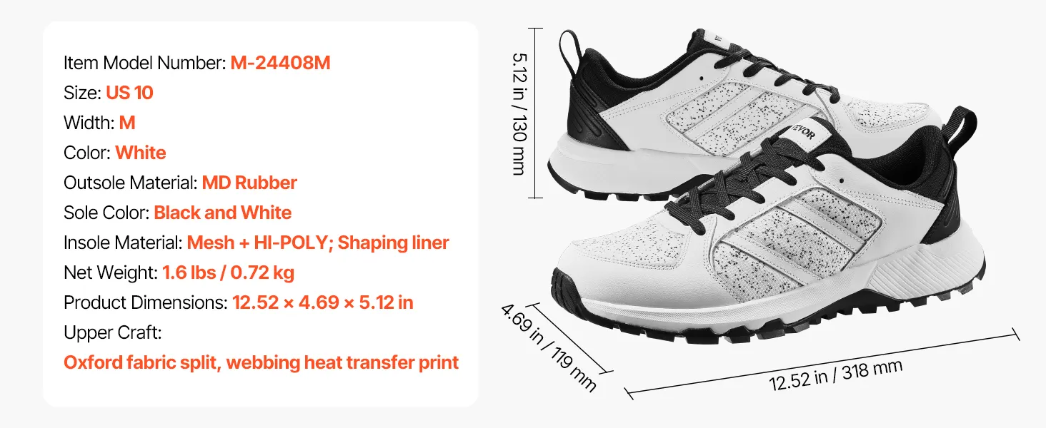 VEVOR Cross Training Shoes, M Width Sneakers UK Size 9, Wide Toe Box Shoes with Arch Support & Adjustable Lace-up, Training Shoes for Running, Gymnastics, Dog Walking, and Weightlifting (White)