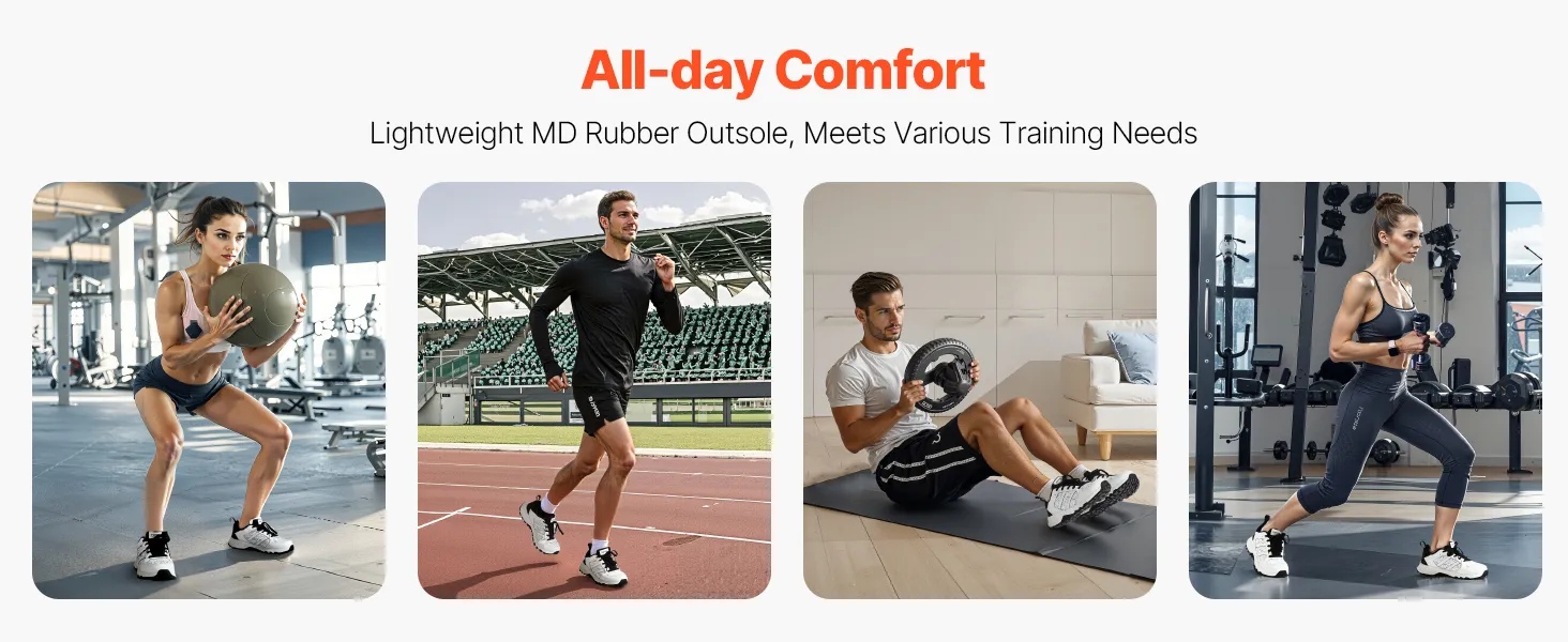 Lightweight Comfort: The insole of the cross training shoe is sweat-absorbing, breathable, and helps maintain freshness. With a widened forefoot and adjustable laces, it suits various training types, keeping your feet comfortable for both strength and cardio exercises, letting you enjoy your workout.