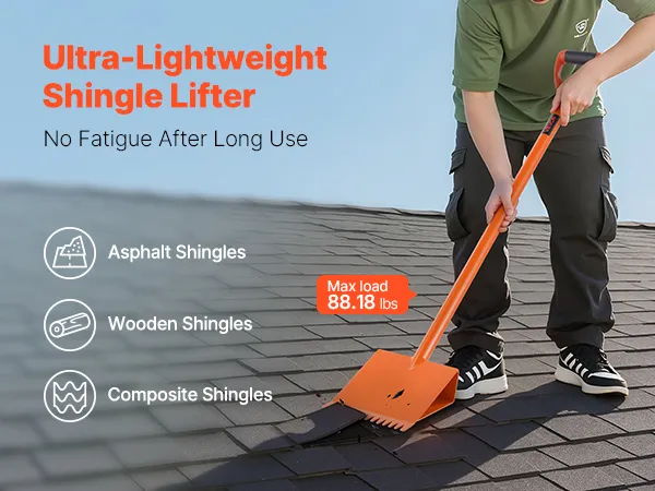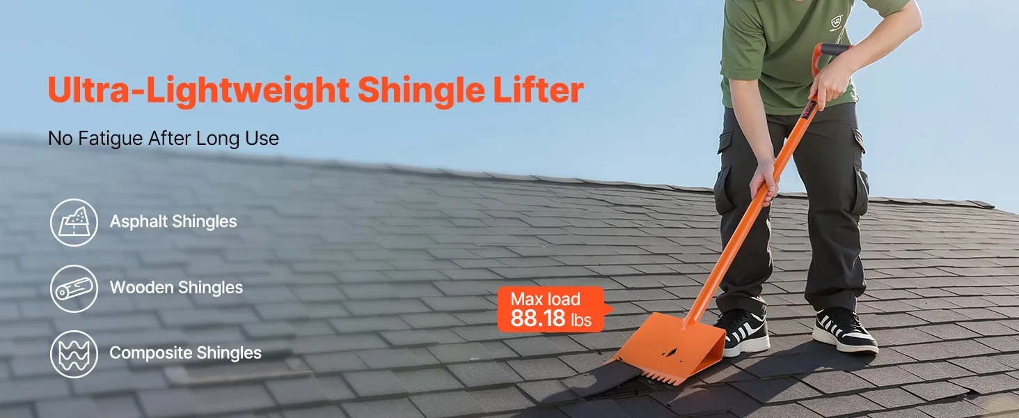 Veelzijdig: Ideaal voor asfalt-, hout- en composiet dakshingles. Deze shingle stripper is geschikt voor zowel professionele aannemers als particulieren. Hij kan grote commerciële renovaties en kleinere doe-het-zelf dakreparaties moeiteloos aan.