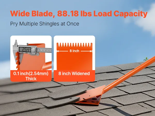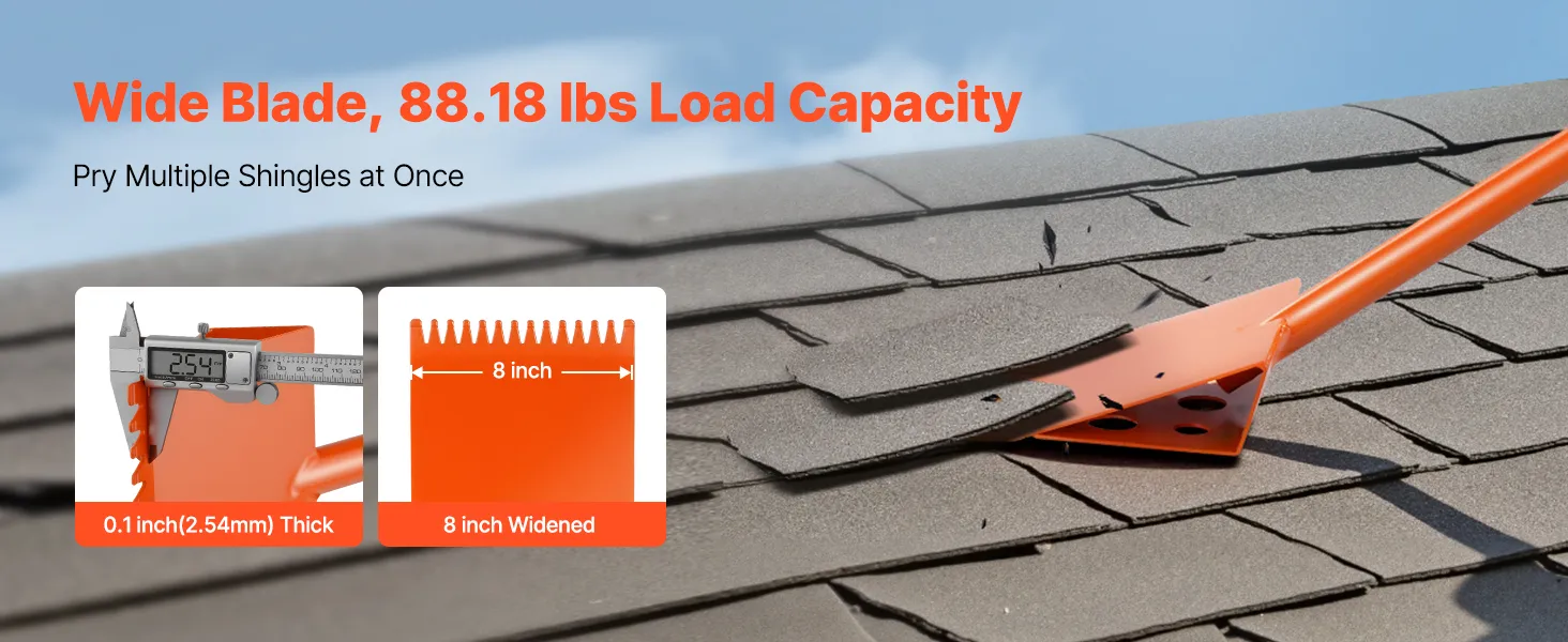 Met een 20 cm breed en 2,5 cm dik blad ondersteunt dit gereedschap voor het verwijderen van dakshingles tot 40 kg, waardoor u meerdere dakshingles tegelijk kunt reinigen. Het bespaart tijd en werk en verhoogt de efficiëntie tijdens sloopwerkzaamheden.