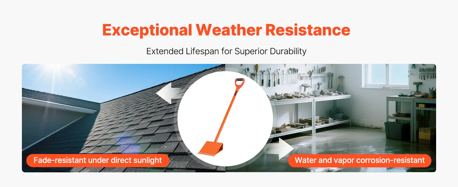 Spuitcoating: Het oppervlak is voorzien van een spuitcoating ter bescherming tegen vocht, zure regen en zoutnevel, waardoor roest wordt voorkomen. De D-greep dakshingle verwijderaar blijft robuust, zelfs in vochtige of zonnige omstandigheden, en garandeert een langdurige werking.