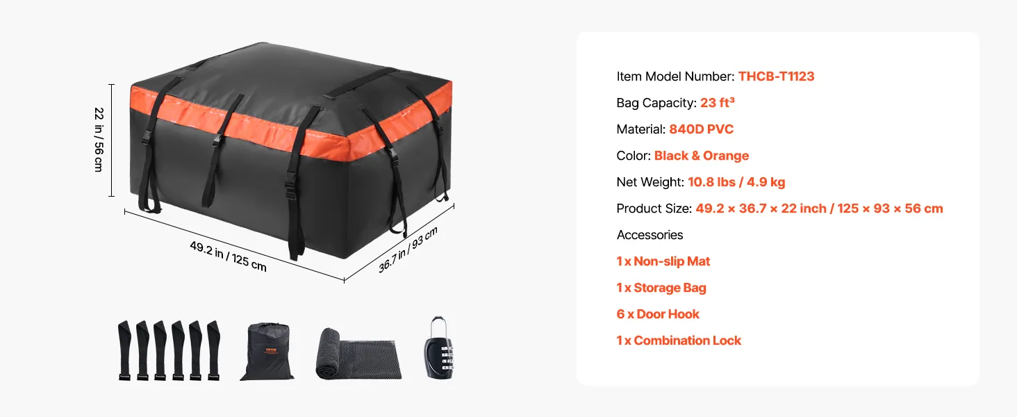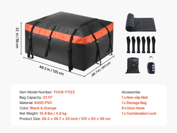 Pack more, travel further! Our 23 cubic feet car rooftop cargo carrier bag offers ample space for travel essentials. Crafted from durable 840D PVC waterproof material, it protects against harsh weather, while the combination lock keeps your luggage safe on the go — perfect for road trips.
