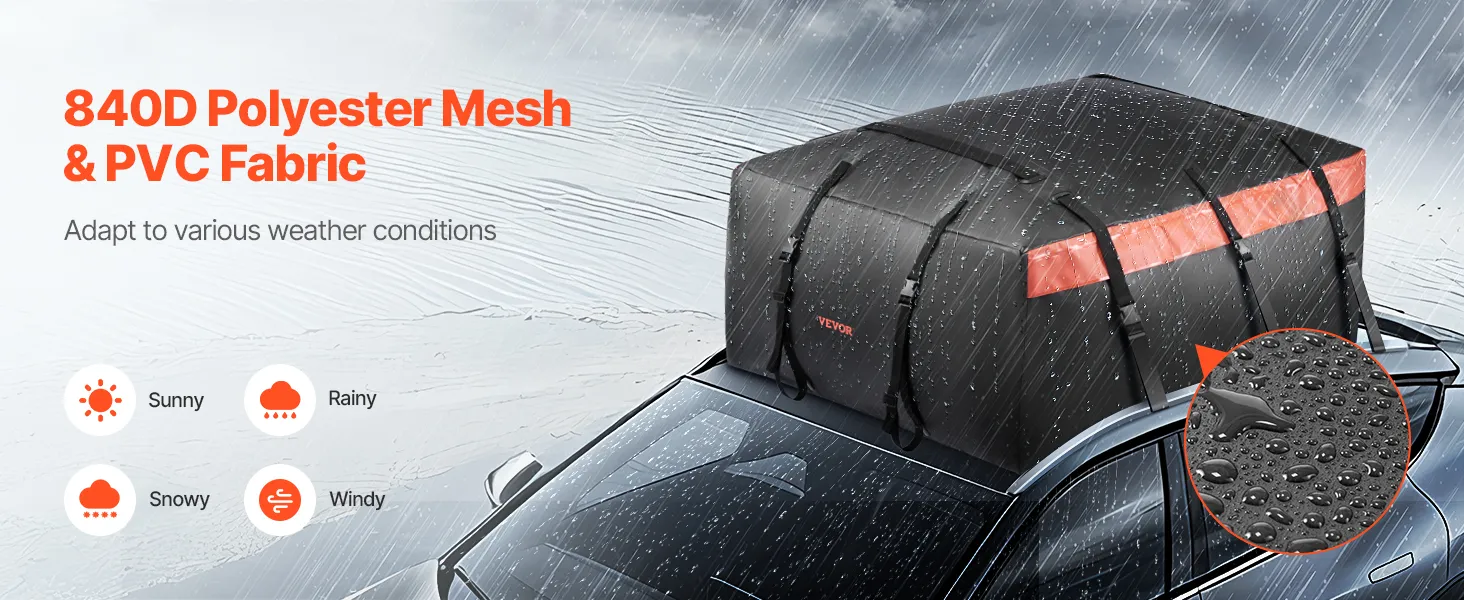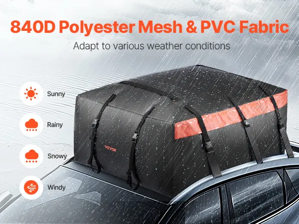 All-Weather Durability: Made from strong and high-quality 840D PVC material, this roof top cargo carrier offers excellent abrasion and tear resistance. It is built to withstand harsh weather conditions, keeping your belongings secure throughout your travels.