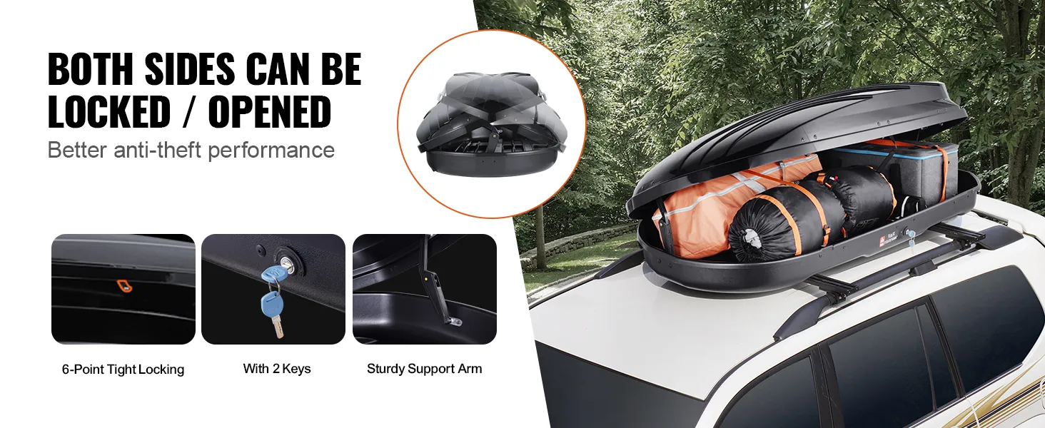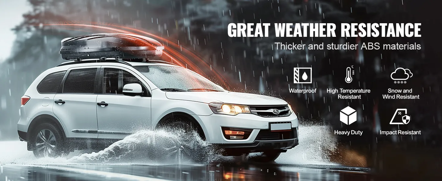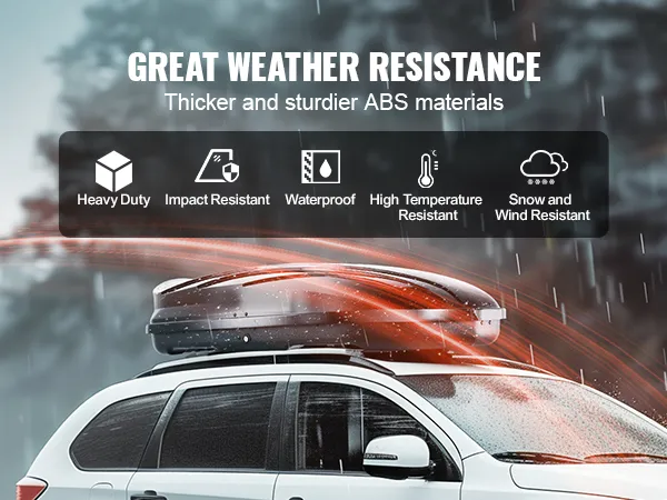 Onze dakkoffer is voornamelijk gemaakt van dik ABS-materiaal, duurzaam en breukbestendig, effectief waterdicht en hittebestendig, en beschermt uw waardevolle spullen tegen de elementen.