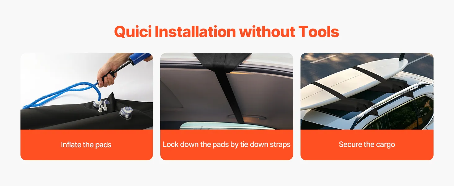 Our inflatable soft roof rack pads are designed to fit a wide range of vehicle types - sedans, SUVs, MPVs, etc. They add more practicality to your car, making it easy to carry luggage, sporting equipment, or other cargo, enhancing the convenience of your travel and daily outings.