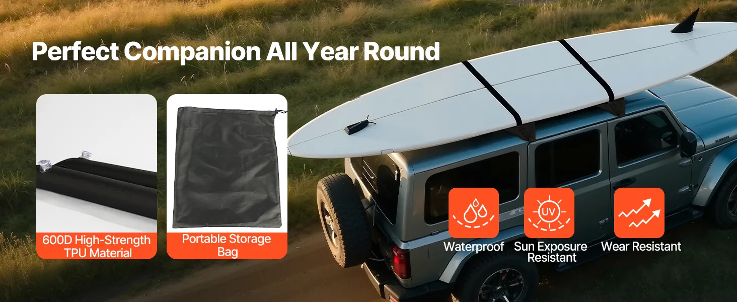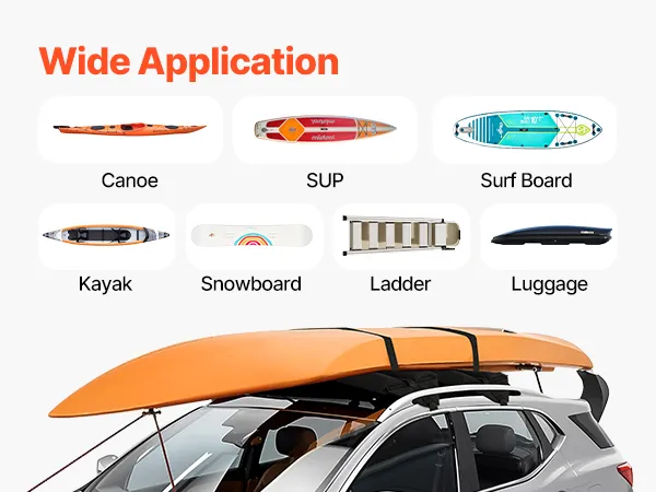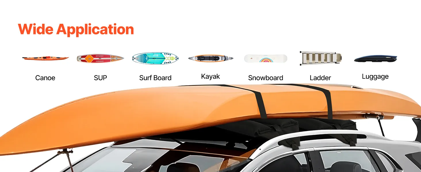 Create extra storage space on your car roof and securely transport kayaks, surfboards, long boards, paddle boards, snowboards, canoes, and other outdoor gear with ease. Our soft rack set is just right for a variety of activities and everyday storage.