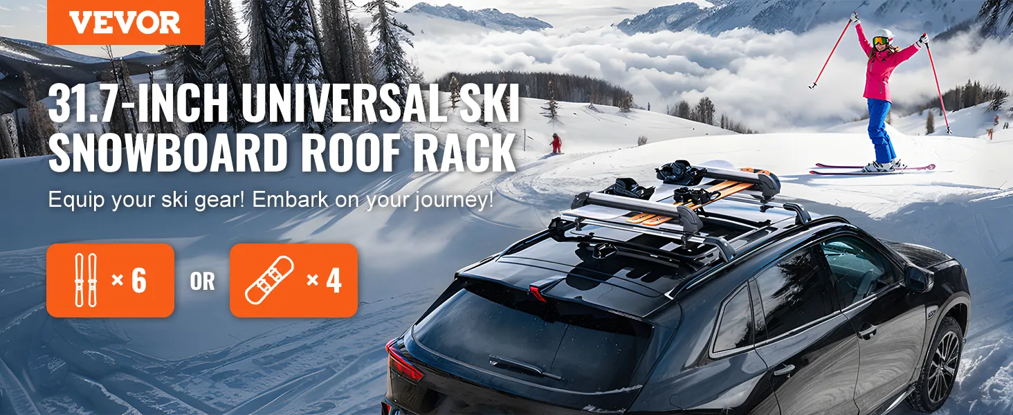 Equip your ski gear and go with VEVOR ski snowboard roof rack. Designed to easily accommodate up to 6 pairs of skis or 4 snowboards, it maximizes your vehicle's roof space while ensuring secure transportation. Durable and reliable, it's an essential companion for your outdoor adventures.
