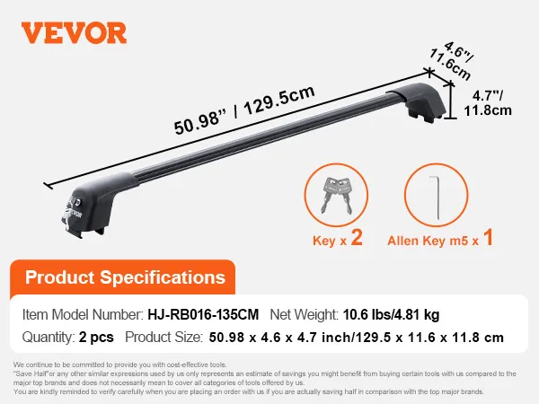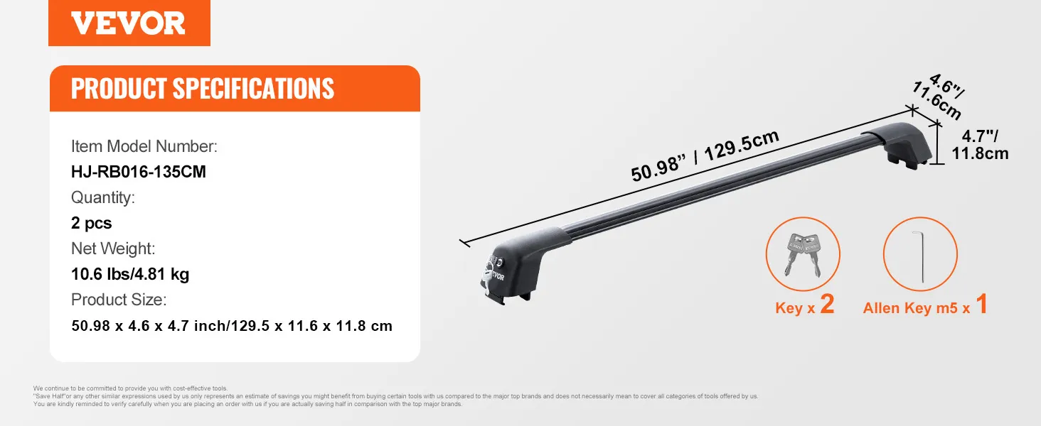 Universele dakdragerdwarsstangen: onze 51,1-53,5 inch (129,8-135,8 cm) lange dakdragerdwarsdragers zijn geschikt voor de meeste voertuigen met een gesloten dak en gegroefde zijrails (zonder opening), waarbij de binnenbreedte van de zijrails moet zijn (45,9-48,2 inch / 116,5-122,5 cm). Boren is niet nodig - de flexibele montagevoeten kunnen worden aangepast zodat ze perfect op het dak van uw voertuig passen.