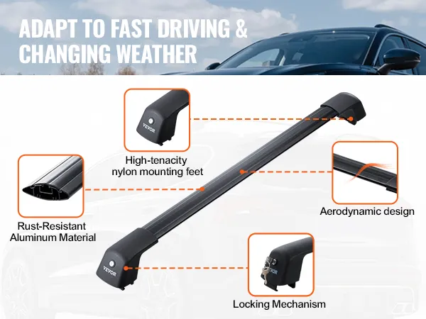 Geluids- en trillingsvrij: het aerodynamische ontwerp van aluminium buizen minimaliseert de luchtweerstand en het geluid, terwijl de nylon montagevoeten uw voertuig beschermen tegen krassen en zorgen voor een stille, probleemloze rit voor u en uw kinderen.