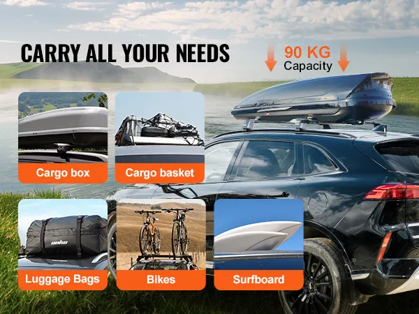 90kg laadvermogen: Vergroot het laadvermogen van uw voertuig met een laadvermogen van 90kg. Nu kunt u moeiteloos grote voorwerpen zoals dakdragers, transportboxen, surfplanken, fietsen en ski's vervoeren en uw reizen nog aangenamer en comfortabeler maken.