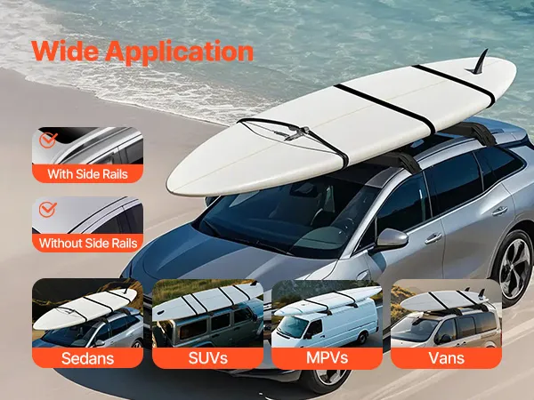 Universal Fit for Most Vehicles: Compatible with most cars without the need for crossbars, our 31.5-inch universal soft roof rack pads fit vehicles with or without side rails. Perfectly suited for popular 2, 3, 4, and 5-door sedans and SUVs, it's a versatile solution for most cars on the road.