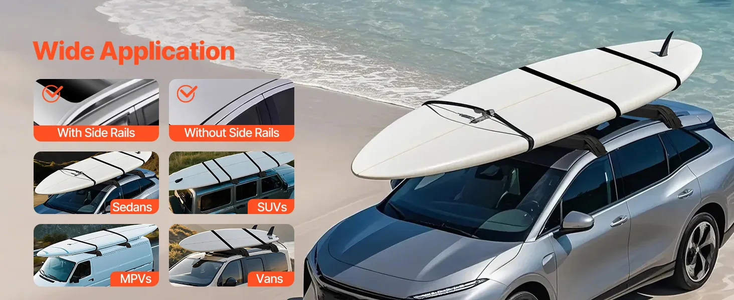 Our universal soft roof rack pads are designed to fit a wide range of vehicle types - sedans, SUVs, MPVs, etc. They add more practicality to your car, making it easy to carry luggage, sporting equipment, or other cargo, enhancing the convenience of your travel and daily outings.