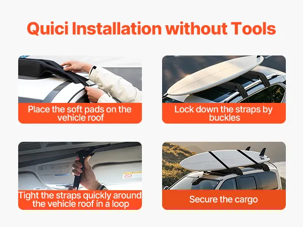 Installation is a easy with adjustable straps and buckles that quickly secure the soft pads to your car roof. In just a few minutes, you can have your roof rack ready, making your travel prep fast and efficient.