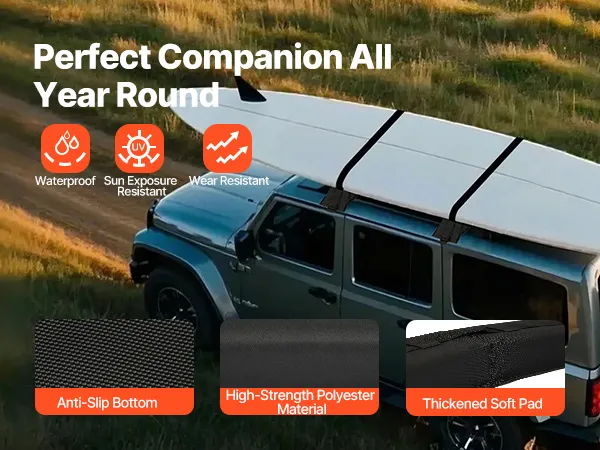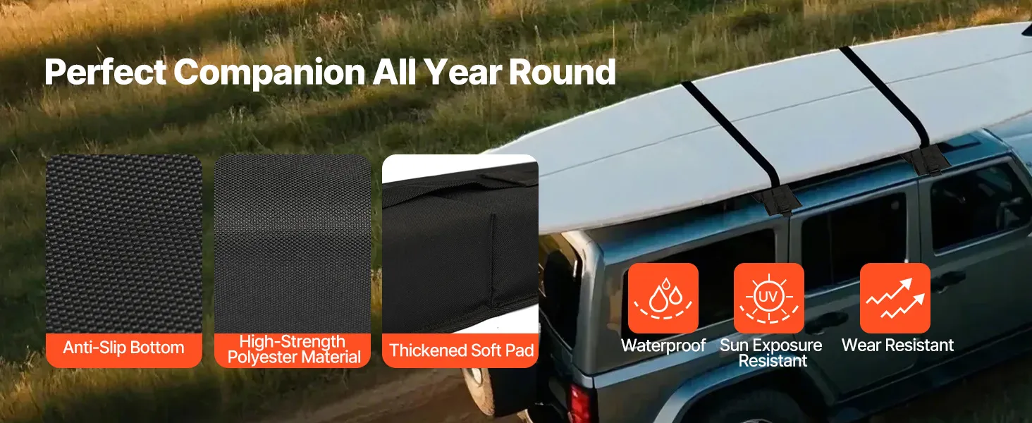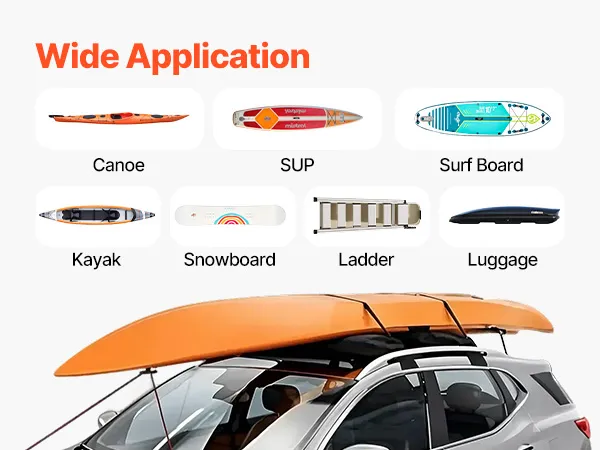 Versatile Applications: Create extra storage on your roof to transport gear like kayaks, surfboards, long boards, paddle boards, snowboards, and more. Whether for leisure or work, this luggage kayak carrier is a fantastic solution for your life on the go.