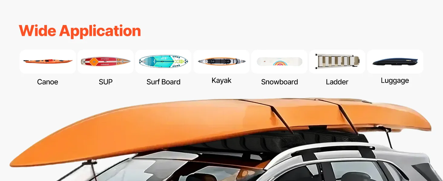 Create extra storage space on your car roof and securely transport kayaks, surfboards, long boards, paddle boards, snowboards, canoes, and other outdoor gear with ease. Our soft rack set is just right for a variety of activities and everyday storage.