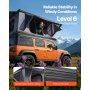 • Robuust en stabiel: Een versterkte aluminium harde schaal in combinatie met gasveren van koolstofstaal zorgt voor betrouwbare stabiliteit van deze daktent. Hij is bestand tegen windkracht 6. In opgevouwen toestand houden stevige sluitingen de tent goed gesloten en voorkomen ze dat hij verschuift tijdens het rijden.