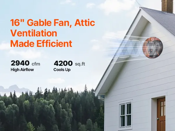Efficient Ventilation: Our gable mount fan delivers an impressive 2940 CFM airflow, covering areas up to 4200 sq. ft.. It's the ideal choice for attics, workshops, and other spaces, effectively reducing temperatures and enhancing air quality with ease.