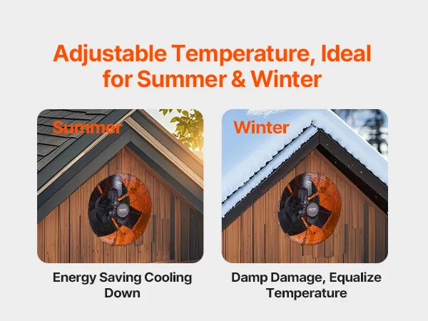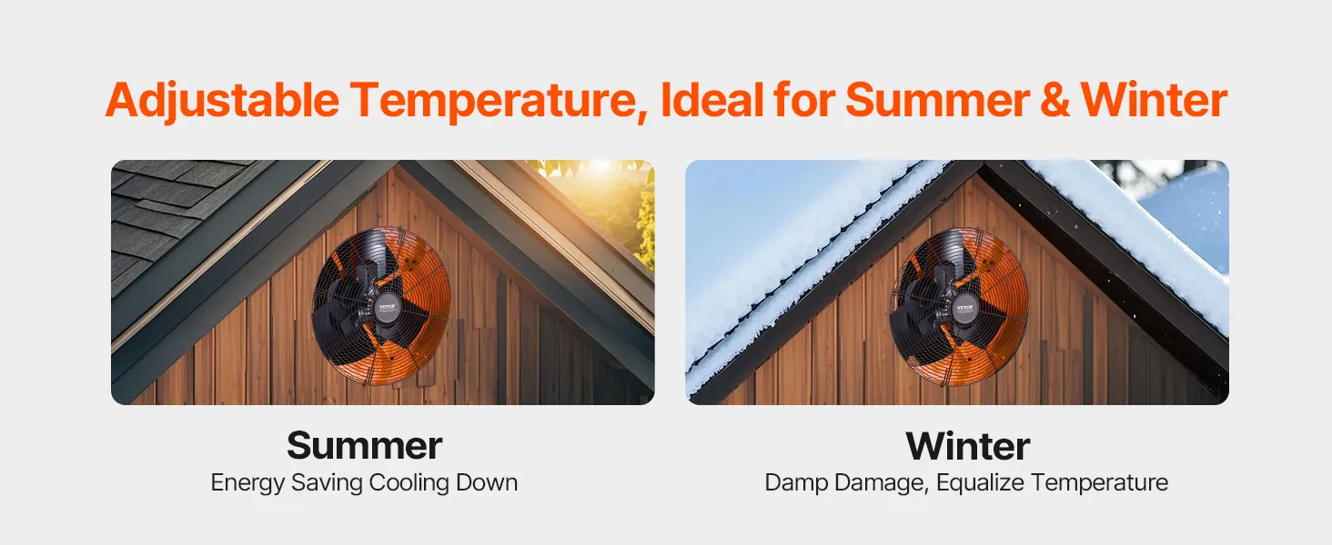 Energy-Saving Design: Equipped with an adjustable thermostat, this gable attic fan automatically turns on and off based on ambient temperature, minimizing energy waste while promoting a green lifestyle.