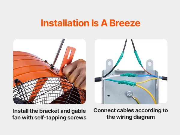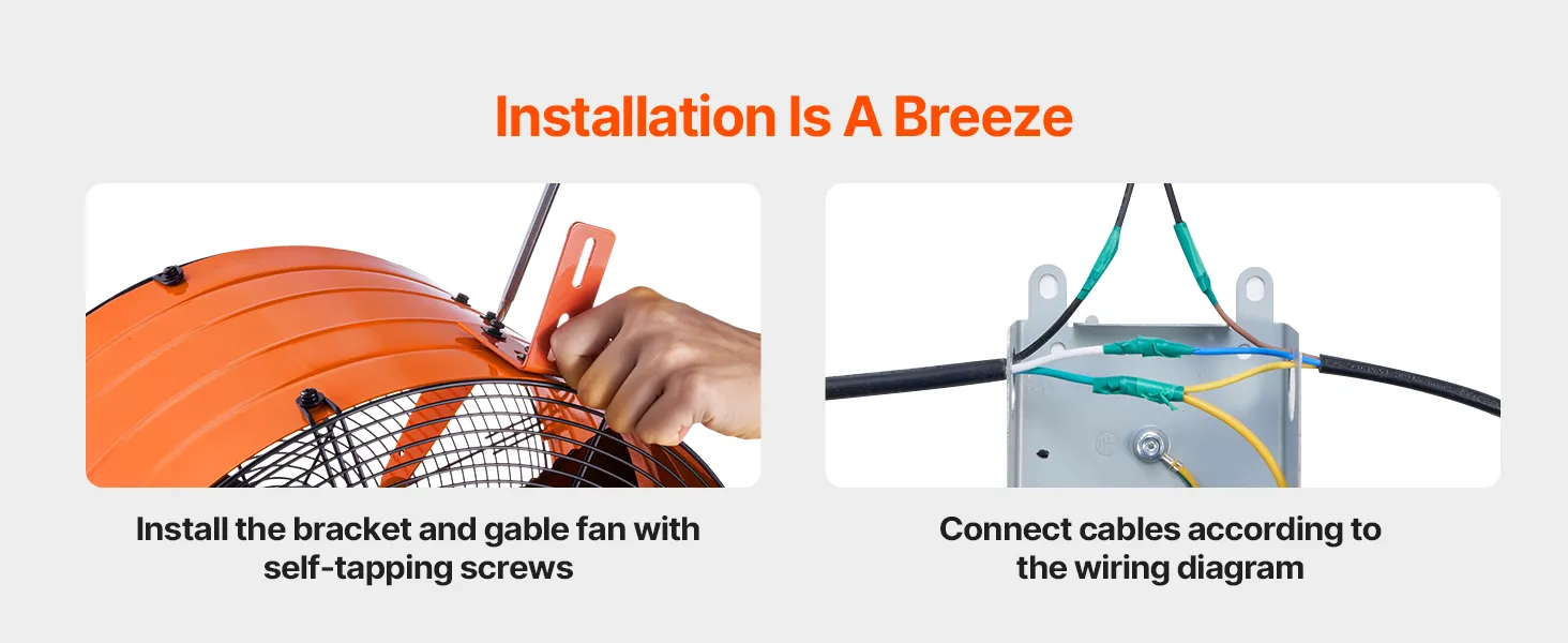 Get it set up in just 2 steps! Secure the fan and mounting bracket with self-tapping screws, then connect the cables following the wiring diagram. No need for professional tools—install our attic ventilation fan with ease.