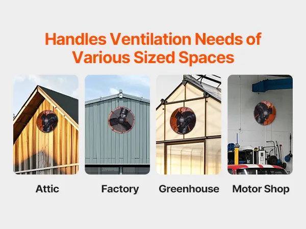This practical attic exhaust fan meets ventilation needs across a variety of spaces, whether it's an attic, factory, warehouse, barn, greenhouse, or auto shop. It handles them all effortlessly.