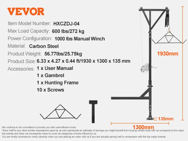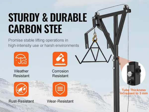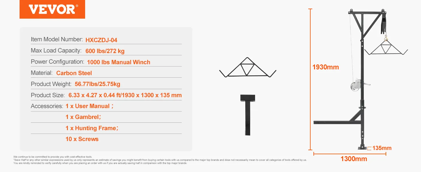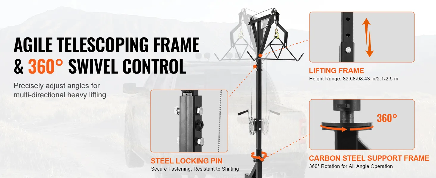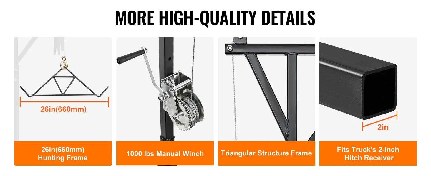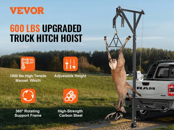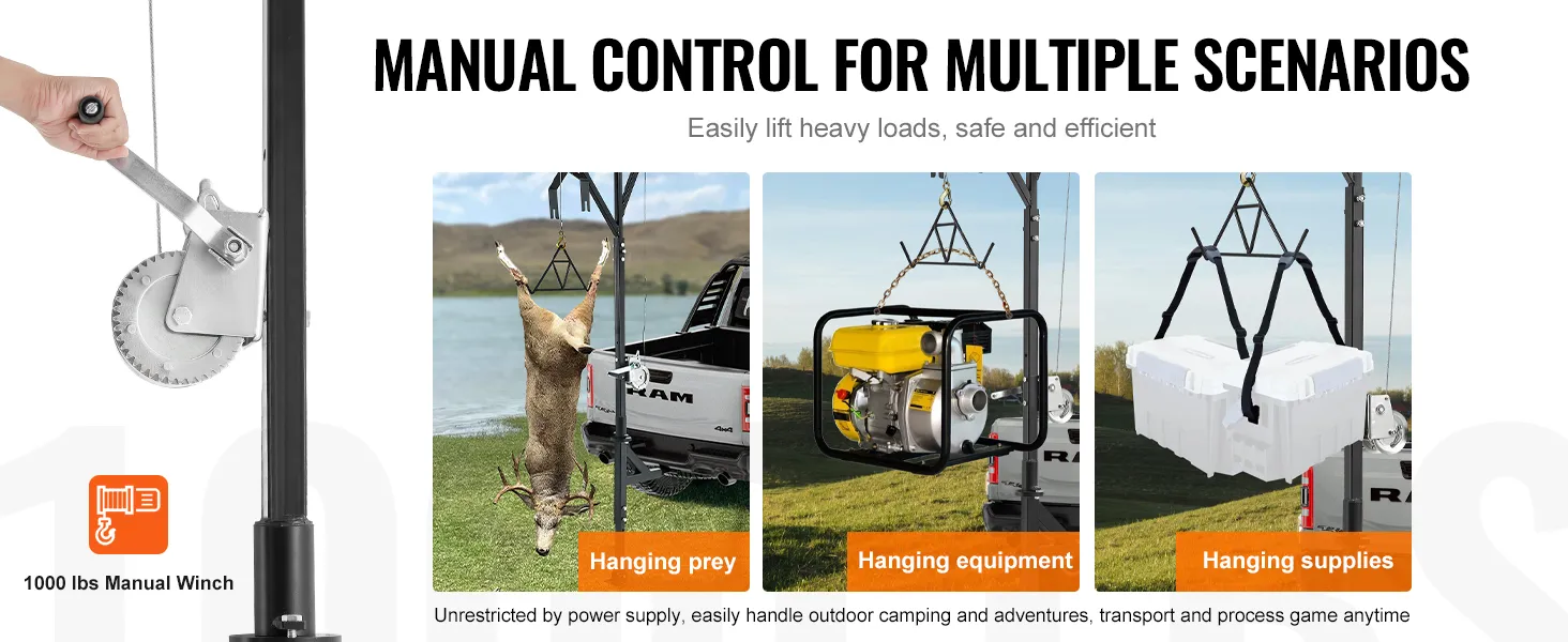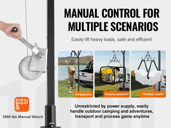 Moeiteloze handmatige bediening: Zeg vaarwel tegen ingewikkelde bedrading met onze gametakel! Dankzij de handbediende lier is het optillen een fluitje van een cent, perfect voor het ophangen, schoonmaken of villen van wild met minimale inspanning. Klaar voor alle spontane of dringende taken onderweg!