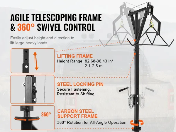 Flexibel telescopisch: Bereik nieuwe hoogten met onze hefboom voor de trekhaak voor vrachtwagens, verstelbaar van 2,1-2,5 m (82,68-98,43 inch). Met bouten vastgezet en uitgerust met een standaard 2" trekhaak, past hij in al uw hijsbehoeften op een verscheidenheid aan voertuigen en scenario's.