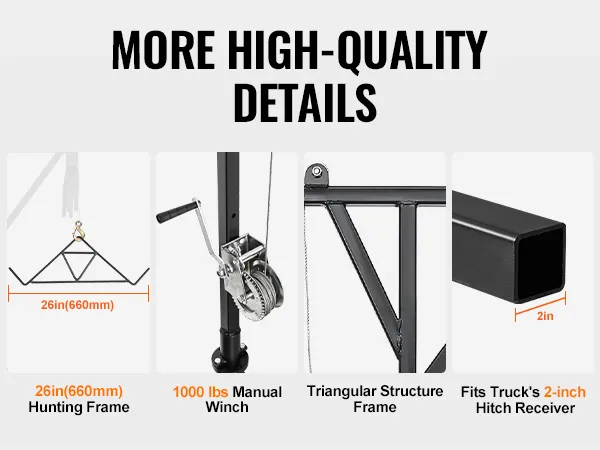 Onze op de trekhaak gemonteerde hertentakel is gemaakt van hoogwaardig koolstofstaal en wordt aangedreven door een krachtige handlier van 1.000 lb. Hij kan met gemak 272 kg aan en biedt een solide en stabiele lift voor uw zwaarste lasten.