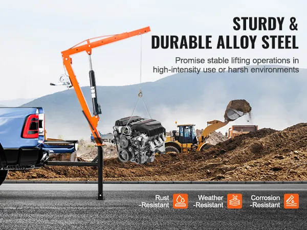 Powerful Load Capacity: Lift up to 500 lbs with ease! Our truck crane's boom and telescopic arm are crafted from tough, high-strength alloy steel. The robust structure stands up to weight challenges in extreme operating conditions.