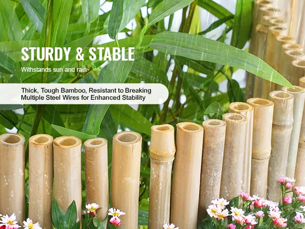 Sturdy and Durable: Each bamboo panel piece is secured with heavy-duty galvanized steel wire, ensuring rust resistance and overall strength. The bamboo undergoes heat treatment to enhance its waterproof feature, extending its lifespan. Embrace green living!