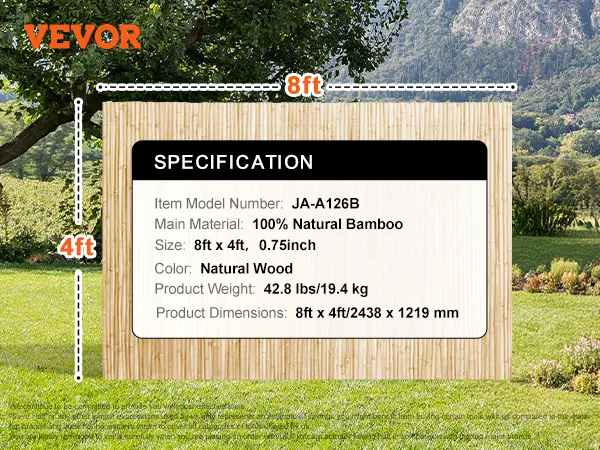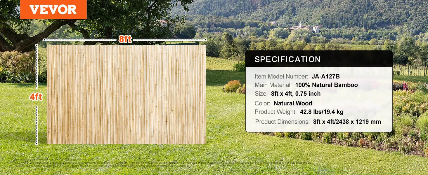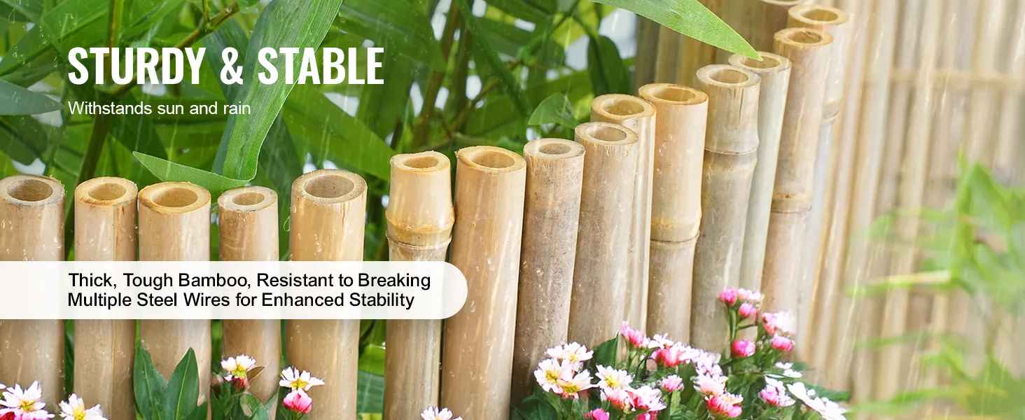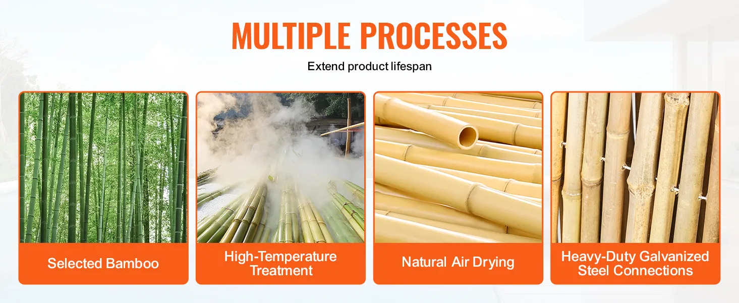 Sturdy and Durable: Each bamboo panel piece is secured with heavy-duty galvanized steel wire, ensuring rust resistance and overall strength. The bamboo undergoes heat treatment to enhance its waterproof feature, extending its lifespan. Embrace green living!