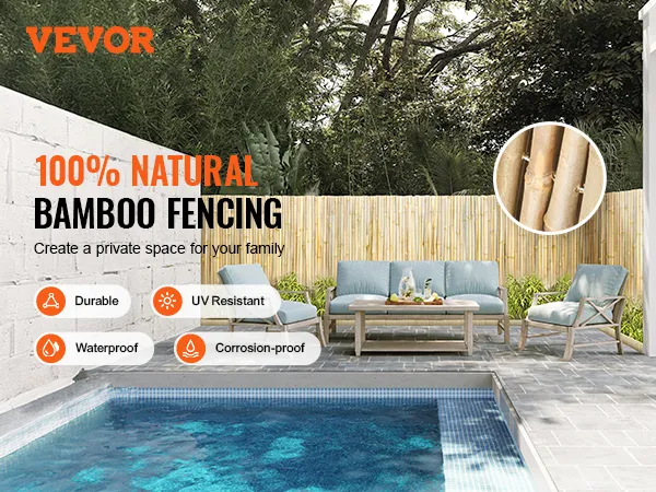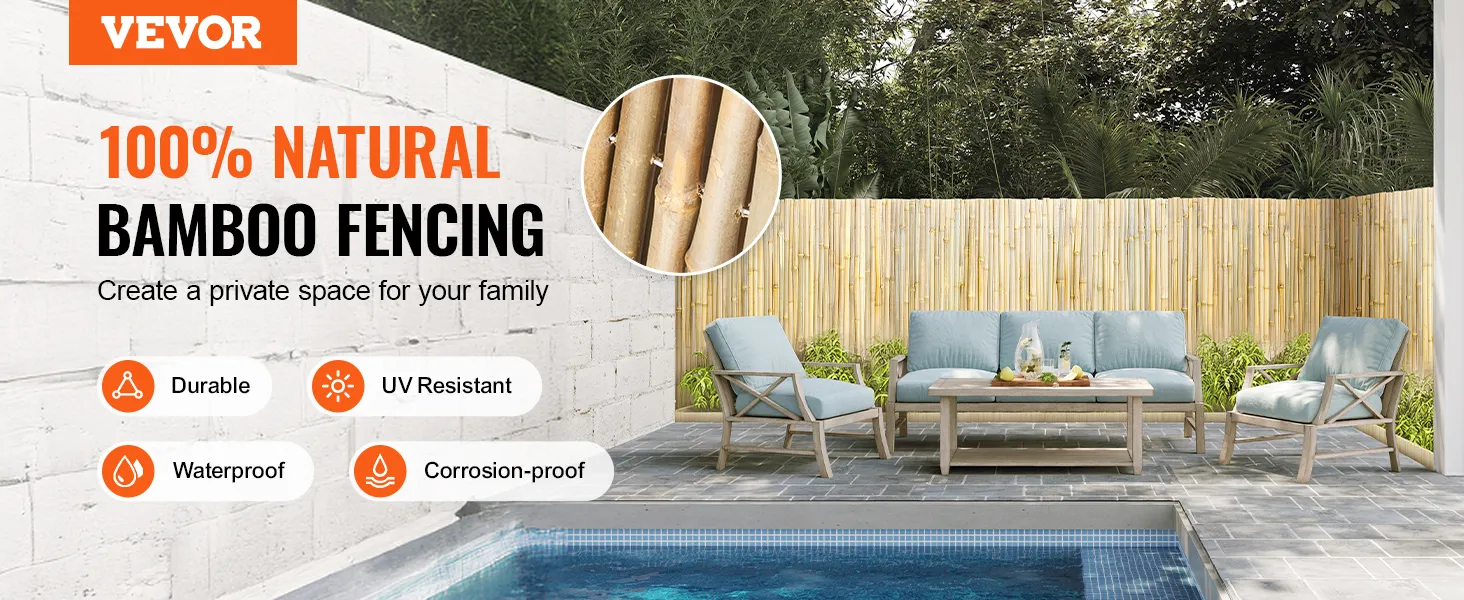 Use Tips: As a natural product, each bamboo piece is unique, so color and diameter may vary. For outdoor use, we recommend regularly applying a layer of linseed oil or sealant to maintain the natural bamboo fencing's appearance.