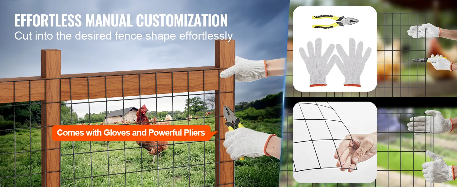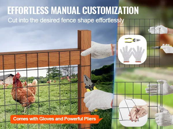 Eenvoudige installatie: met een draaddiameter van 16 gauge en een afmeting van 48 inch x 50 voet heb je genoeg materiaal om draadgaas voor verschillende toepassingen te maken. Wij bieden handschoenen en een sterke tang voor gemakkelijke installatie en op maat snijden.