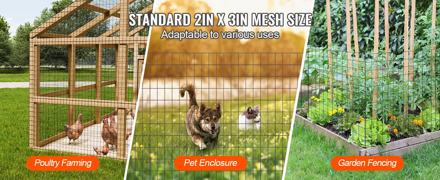 De VEVOR hardware doek is perfect voor tuin- en pluimveebescherming. Het heeft een maaswijdte van 2x3 inch die kleine dieren buiten houdt. Dit omvat konijnen, woelmuizen en andere plagen. Het gaas is sterk genoeg om schade door grotere dieren te weerstaan. Vinylcoating maakt het gemakkelijk te hanteren en te installeren. U kunt het gebruiken om veilige barrières rond uw tuin te creëren. Dat zal uw planten beschermen tegen schade. U kunt dit gereedschap ook gebruiken om uw pluimvee te beschermen. Bijvoorbeeld, kippen en andere vogels zijn veilig tegen roofdieren met deze hardware stof. Het is veelzijdig en zeer effectief.