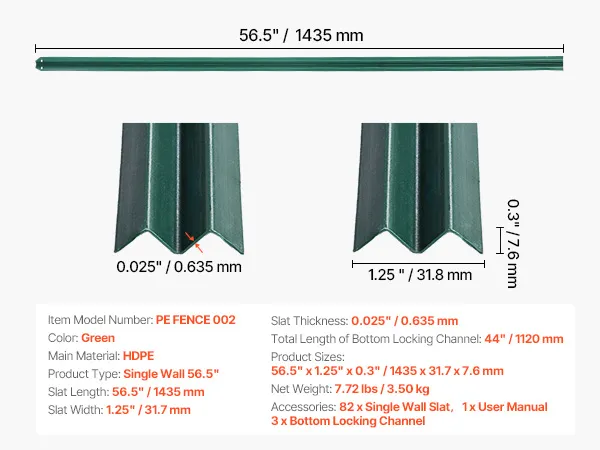 Single-Wall Privacy Slats: Designed specifically for 5' high fences, these bottom locking privacy slats are approximately 56.5" in length, ensuring a ideal fit and avoiding slats from extending above the fence top.